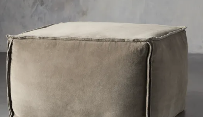 The console has clean lines and incorporates reclaimed European oak making it a beautiful natural element. The mirror and pendant light brings in a metal element, and the black adds a nice contrast to the design. We sourced a hand-woven rug with a stripe pattern to add texture to the space. To soften the entryway, we sourced washed grey velvet poufs that add more texture to the entry.
