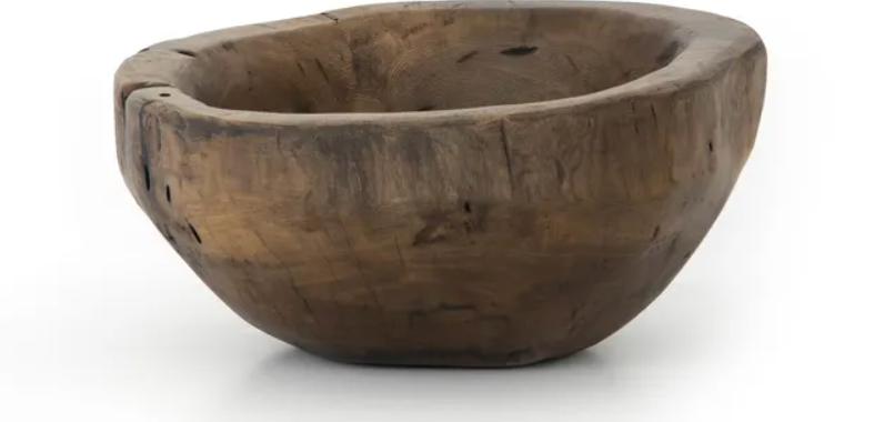 For minimalists, we wanted to provide a few accessories to add to the console but will not create clutter. We sourced a black textured vase to add some greenery and placed it next to two tapered candle sticks made of solid marble in a neutral taupe color. We added a reclaimed wood bowl below the mirror on the opposite side.
